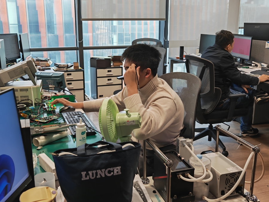 泊维胜的工作人员在调试样机。 李蕾 摄影